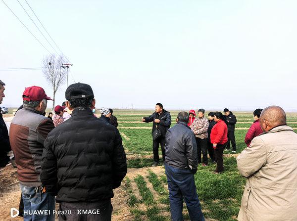 集團(tuán)旗下冀隆公司在衡水深州、邯鄲館陶、天津?qū)氎娼M織當(dāng)?shù)胤N植大戶召開農(nóng)藥產(chǎn)品宣傳講解會(huì)和田間小麥觀摩會(huì),深入田間地頭查看苗情,講解小麥返青防病、除草等田間管理知識(shí),指導(dǎo)農(nóng)戶科學(xué)用肥、用藥,為農(nóng)戶提供春耕春管服務(wù)。